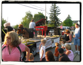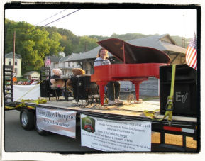 For the Scio Fall Festival parade, we hauled a grand piano up on a float trailer and I played piano favorites for a crowd of 8,000 people! After the parade, we won first place for best float!